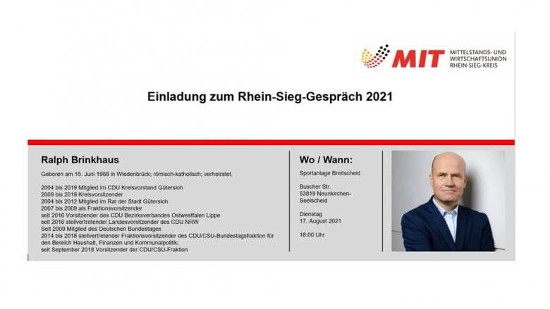 Zur besseren Planung bitten wir Sie, sich bis zum 10. August 2021 für die Veranstaltung verbindlich anzumelden unter: ichbindabei [at] cdu-rhein-sieg.de