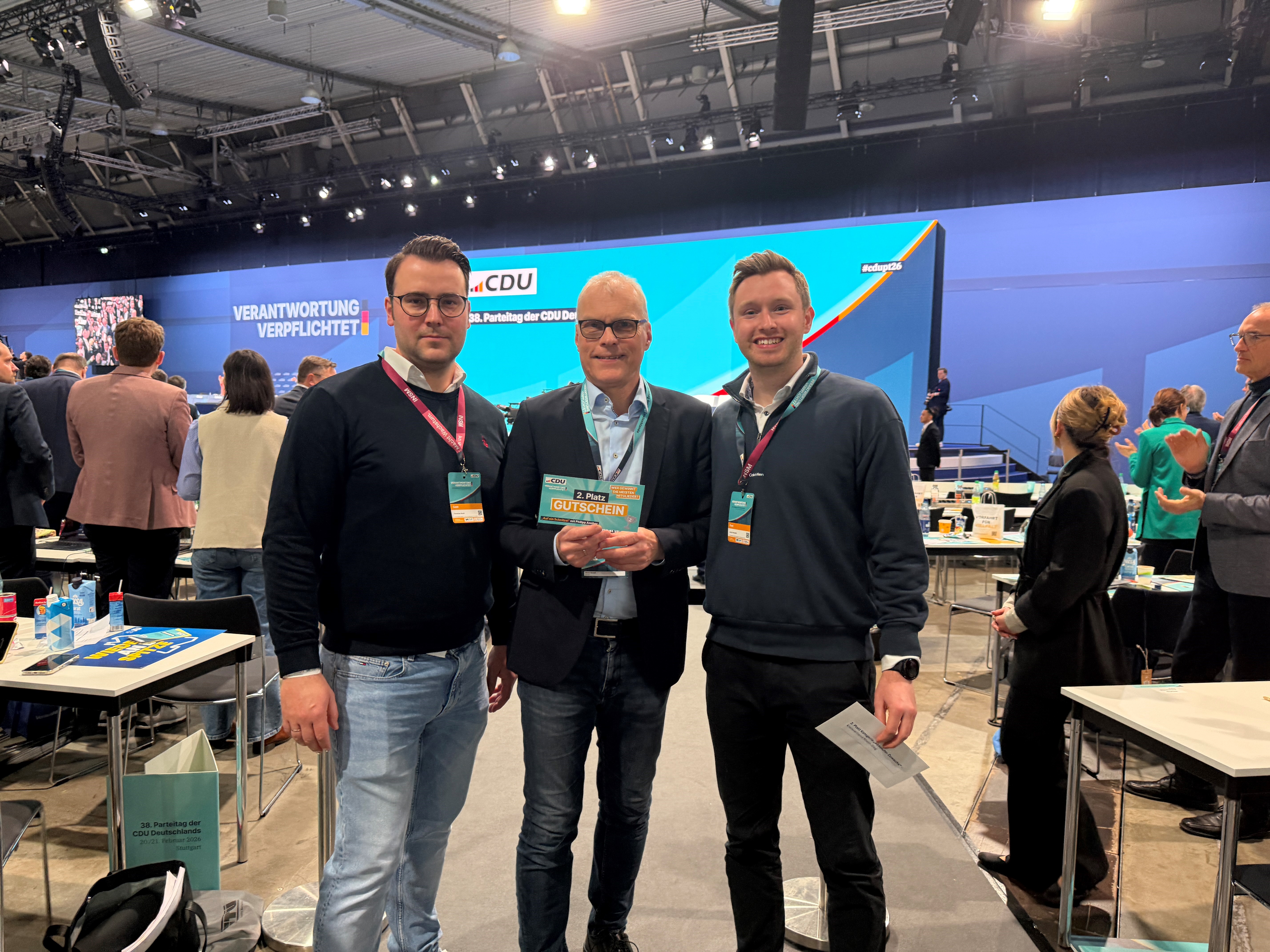 Im Rahmen des diesjährigen Bundesparteitages in Stuttgart wurde die CDU Rhein-Sieg als bundesweit zweitbester Kreisverband in der Kategorie „erfolgreiche Mitgliederwerbung in absoluten Zahlen“ geehrt.
