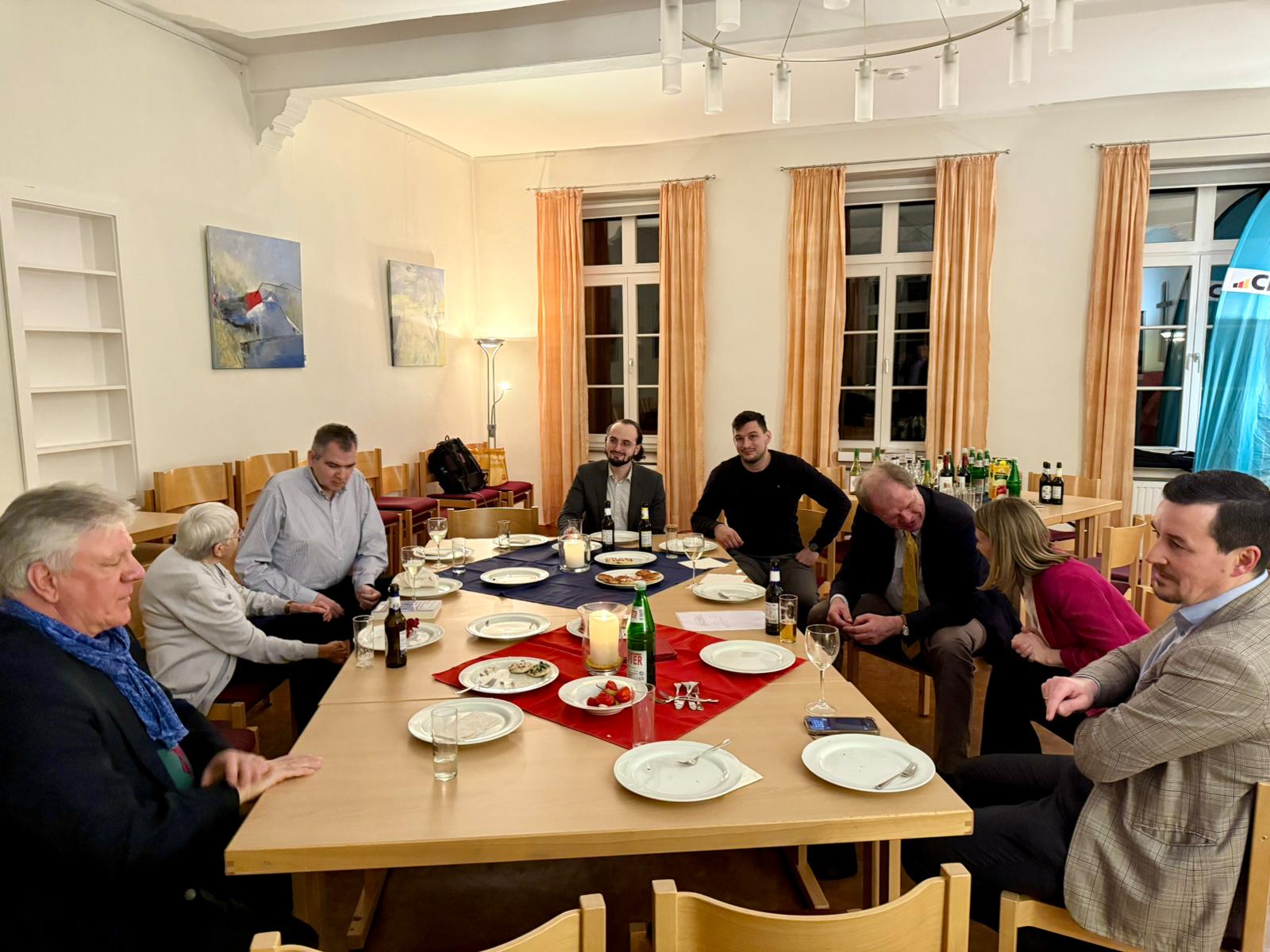 Im Rückblick wurde deutlich, wie der EAK seit seiner Reaktivierung im September 2023 daran arbeitet, Brücken zwischen Kirche, Politik und Gesellschaft zu bauen und evangelische Perspektiven innerhalb der Partei sichtbar zu machen. Während zwei Jahren intensiver Aufbau- und Vernetzungsarbeit wurden zahlreiche Kontakte und Gesprächskanäle wieder reaktiviert oder neu aufgebaut, beispielsweise zu den Superintendenten der drei Kirchenkreise im Rhein-Sieg-Kreis sowie zu Interessensgruppen und möglichen Kooperationspartnern wie dem EAK Bonn, dem Diakonischen Werk Bonn und Region, der Gesellschaft für Christlich-Jüdische Zusammenarbeit oder dem Bundespolizei-Standort Hangelar. Vor dem Hintergrund gemeinsamer Herausforderungen von Kirche und Partei unterstrich die Aussprache die Bedeutung eines engagierten Evangelischen Arbeitskreises im Rhein-Sieg-Kreis. Besonders hervorzuheben sind zwei erfolgreich durchgeführte Weihnachtsempfänge im Melanchthonhaus in Swisttal-Buschhoven, die jeweils mit einem Gottesdienst in der Versöhnungskirche mit Andachten von Pfarrerin Elisabeth Berg, die den EAK sehr stark unterstützt, begannen. Zudem fand im November 2025 eine Buchvorstellung von Notfallseelsorger Albrecht Roebke in der Dollendorfer Bücherstube in Königswinter statt.