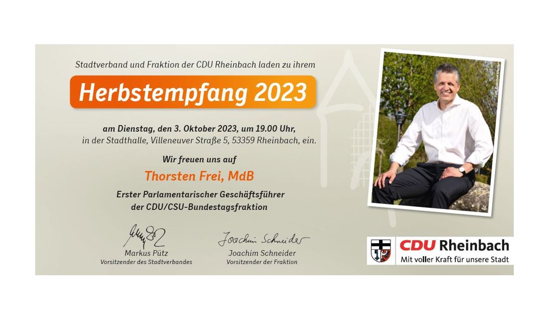 Stadtverband und Fraktion der CDU Rheinbach laden zu ihrem Herbstempfang 2023 ein.