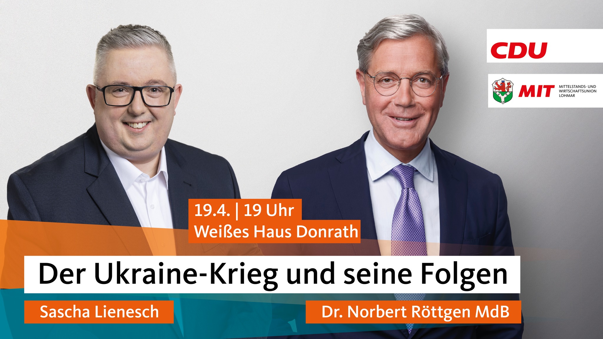 Der CDU Außenexperte und Bundestagsabgeordnete Dr. Norbert Röttgen kommt gemeinsam mit unserem Landtagskandidat Sascha Lienesch nach Lohmar (Donrath), um die Situation des Ukraine-Krieges zu besprechen.